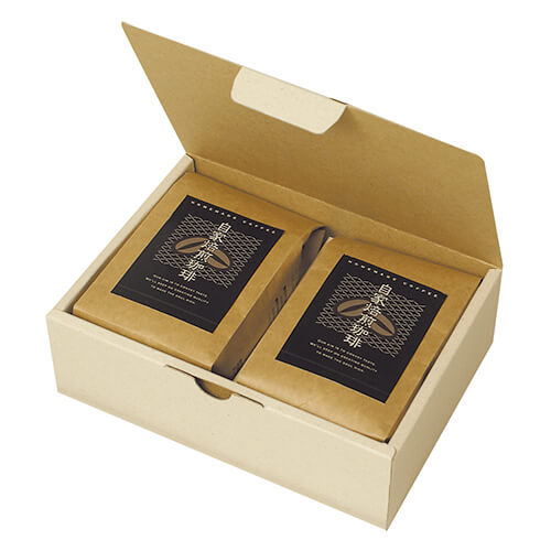 サイズが180×135×60mmのコーヒー用ギフトパッケージ。200g袋×2個にちょうど良い大きさとなっています。コーヒーのパッケージ、ギフト包装にいかがでしょうか。