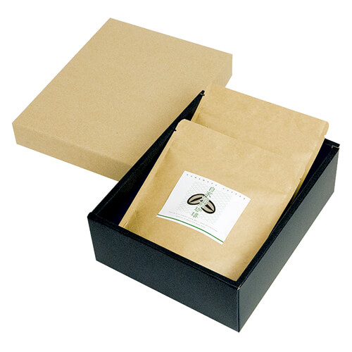 サイズが200×150×80mmのコーヒー用ギフトパッケージ。アルミスタンドパック100g2袋にちょうど良い大きさとなっています。コーヒーのパッケージ、ギフト包装にいかがでしょうか。