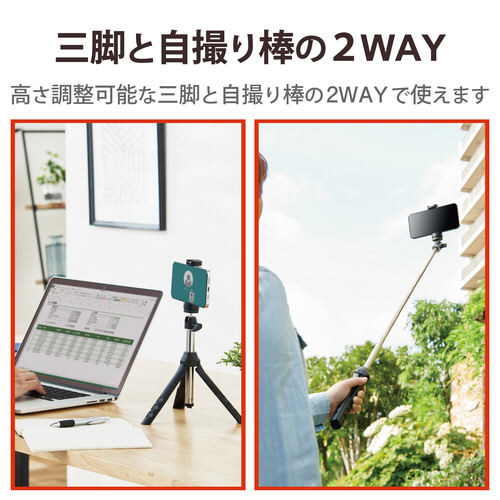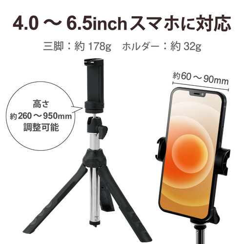 お出かけ時・動画撮影時など様々なシーンで活躍する持ち運びしやすいスマートフォン用三脚です。
