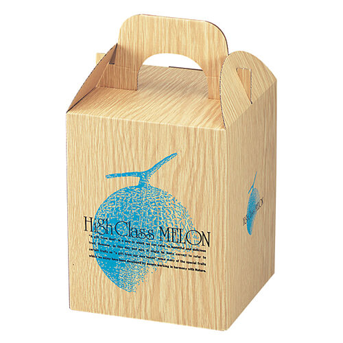 サイズが165×165×210mmのフルーツ用ギフトパッケージ。メロン5玉サイズ・9kgクラス×1個にちょうど良い大きさとなっています。メロンのパッケージ、ギフト包装にいかがでしょうか。
