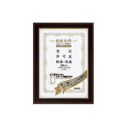 軽量・スタンド付きの高級タイプ。落ち着いた色調のフレームに金ラインの入ったデザインは高級感があります。