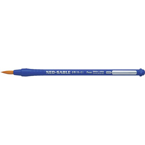 独自製法の特殊毛材を使った、水ふくみとコシの強さのバランスが良い画筆です。軸にすべり止め、ころがり止め付き。水彩えのぐ、アクリル系えのぐ両方使えます。
