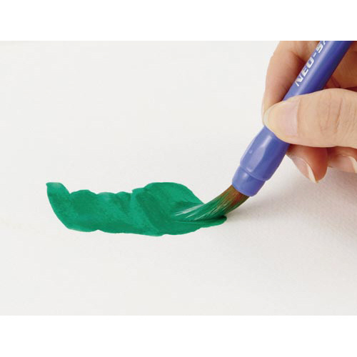 独自製法の特殊毛材を使った、水ふくみとコシの強さのバランスが良い画筆です。軸にすべり止め、ころがり止め付き。水彩えのぐ、アクリルえのぐ、両方使えます。
