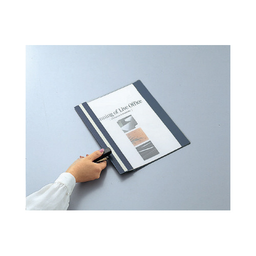 製本テープがない簡易タイプのレポートメーカー。背がきれいに仕上がるので提出用に便利なステープラーとじタイプ。オモテ:透明PP、ウラ:不透明の紙製タイプです。