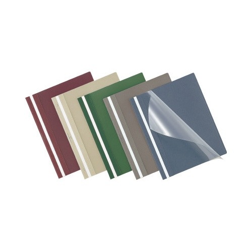 製本テープがない簡易タイプのレポートメーカー。背がきれいに仕上がるので提出用に便利なステープラーとじタイプ。オモテ:透明PP、ウラ:不透明の紙製タイプです。
