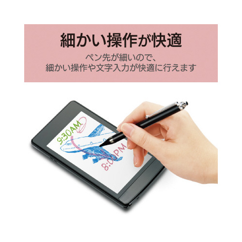 2.5mm径の導電性プラスチック製ペン先を採用し、細かい操作や文字入力が快適に行える極細タッチペン。