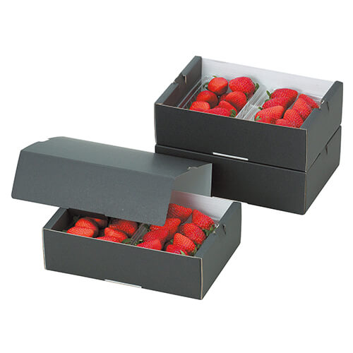 サイズが232×170×75mmのフルーツ用ギフトパッケージ。イチゴ300gトレー×2パックにちょうど良い大きさとなっています。イチゴのパッケージ、ギフト包装にいかがでしょうか。
