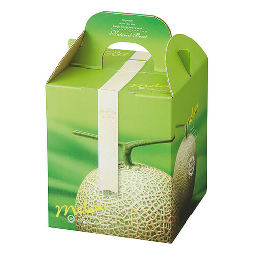 サイズが160×160×195mmのフルーツ用ギフトパッケージ。メロン5玉9kg1個にちょうど良い大きさとなっています。メロンのパッケージ、ギフト包装にいかがでしょうか。