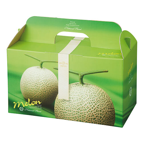 サイズが325×160×195mmのフルーツ用ギフトパッケージ。メロン5玉サイズ9kgクラス2個にちょうど良い大きさとなっています。メロンのパッケージ、ギフト包装にいかがでしょうか。