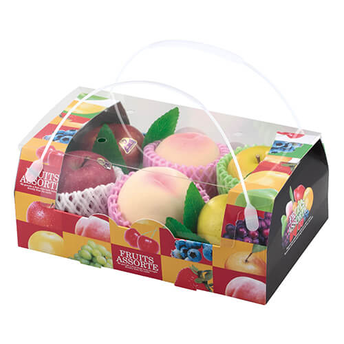 サイズが305×195×125mmのフルーツ用ギフトパッケージ。桃・梨2Lサイズ6個にちょうど良い大きさとなっています。さまざまな果物類のパッケージ、ギフト包装にいかがでしょうか。