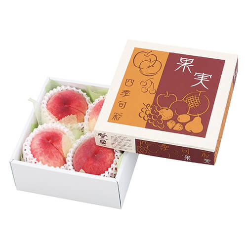 サイズが195×195×90mmのフルーツ用ギフトパッケージ。桃2Lサイズ4個にちょうど良い大きさとなっています。さまざまな果物類のパッケージ、ギフト包装にいかがでしょうか。