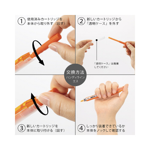 キャップをなくす心配なし。片手ですぐにチェック!ハンディラインS蛍光マーカー専用カートリッジ