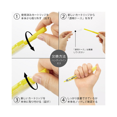 キャップをなくす心配なし。片手ですぐにチェック!ハンディラインS蛍光マーカー専用カートリッジ