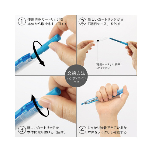 キャップをなくす心配なし。片手ですぐにチェック!ハンディラインS蛍光マーカー専用カートリッジ