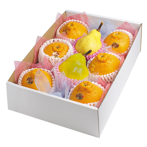 サイズが身365×265×110mmのフルーツ用ギフトパッケージ。デコポン15玉サイズ8個にちょうど良い大きさとなっています。さまざまな果物類のパッケージ、ギフト包装にいかがでしょうか。