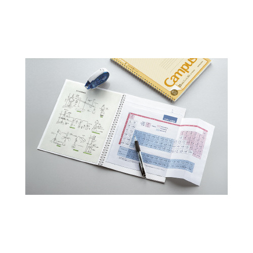 キャンパスツインリングノート。B5サイズの資料が貼れてはみ出さない新規格ノート。四隅にあるLマークを目印にプリントが貼れます。