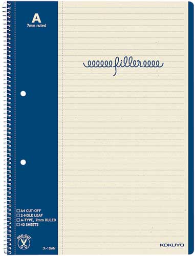 コクヨの定番!きれいに切り離せるミシン目入り!切り取った大きさがJIS規格サイズで2穴あきのため、切り取ってファイリングできる元祖フィラーノート!