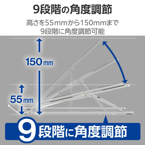 片手で持ち運べるサイズに折り畳み可能!9段階の角度に調整できる、ポータブルノートパソコンスタンドです。