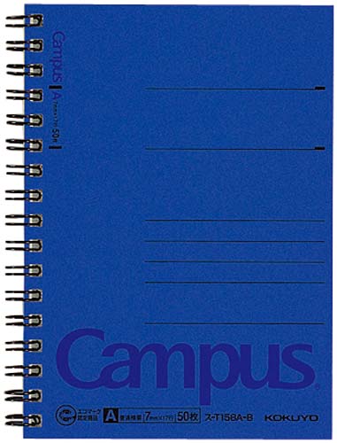 ツインリングノート A6 7mm罫 50枚青 5冊