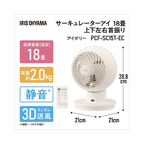 コンパクトなのにパワフルで大風量のサーキュレーターです。エアコンと併用することで冷気・暖気を効率よく循環させることができるので、一年中活躍します。自動で上下左右に首を振る首振り機能付きです。
