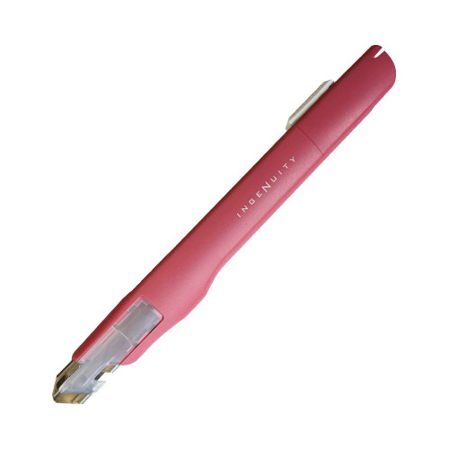 人間工学に基づいたプロフェッショナル仕様の本格33°刃カッターナイフ。刃ブレを軽減させる透明クランプを採用。手にフィットする逆三角形ボディ。