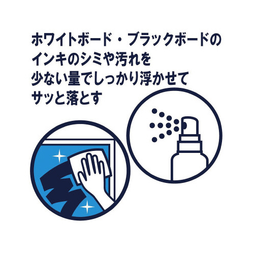 ホワイトボードやブラックボードに残ったインクの汚れやシミを浮かせて落とせます。スプレー式なので広範囲を消すのに便利なクリーナーです。