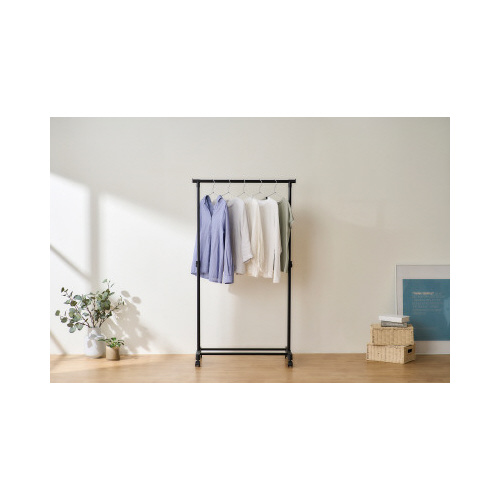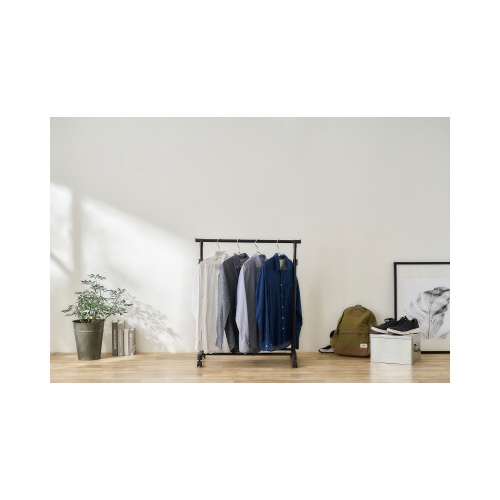 ブラック塗装仕上げでインテリアに馴染みやすいパイプハンガーです。安定感抜群で、たくさん掛けられます。ハンガーパイプの高さは約87.5-150cmの間で、無段階調整可能です。