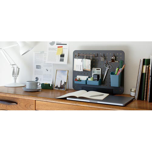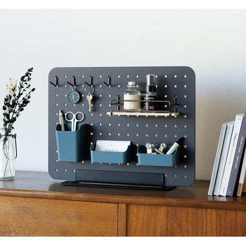「PEGGY」はペグボードを使った卓上収納。工具不要で、組み立ても簡単。様々なパーツを取り付けることができるので、好みの収納を手軽にお楽しみいただけます。