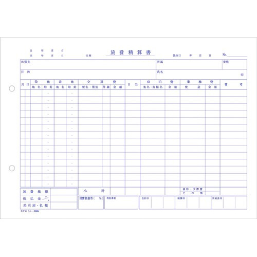 社内用紙 旅費精算書 B5 2穴 50枚 5冊