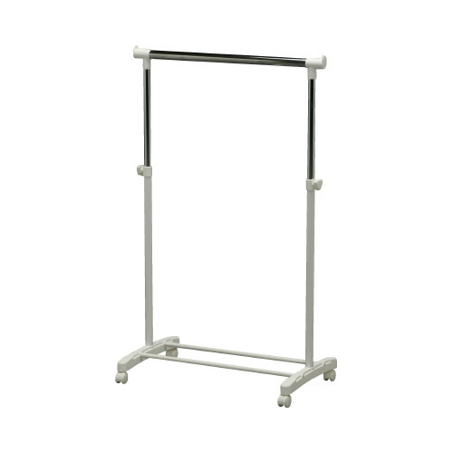 上下に伸縮でき、ハンガー部も伸縮できるパイプハンガーです。移動に便利なキャスター付きです。
