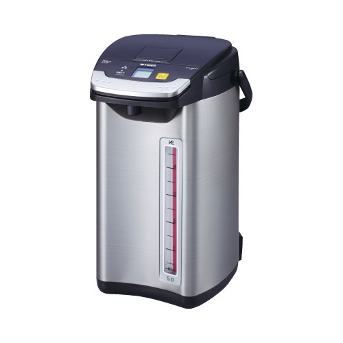 容量5.0Lでたっぷり使える。6つの安心・安全構造が備わった「蒸気レスVE電気まほうびん」。高真空2重瓶(VEまほうびん構造・ステンレス製)の容器は、通電を切っても保温できる頼もしい構造です。