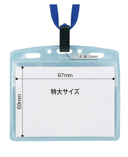 大きなカードも収容可能の特大サイズ。チャック付きでカードの落下を防ぐ!フックパーツを採用しているので、表示面が裏返りにくい。1本のストラップに違うカードや鍵など、複数の物を吊り下げ可能。