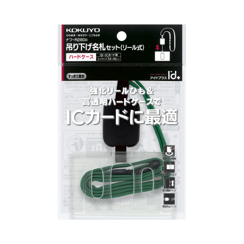 ICカードに最適!伸縮可能なリール付きで、しかも丈夫で切れにくいひもを使用。ケースの裏返りを防ぐ回転防止機能を搭載しています。