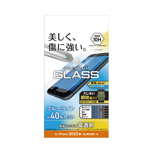 液晶パネルが破損しても安心。BLカットタイプのiPhoneSE第3世代/SE第2世代/8/7/6s/6用液晶保護ガラスです。