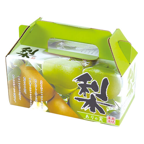 サイズが240×130×120mmのフルーツ用ギフトパッケージ。梨2個にちょうど良い大きさとなっています。さまざまな果物類のパッケージ、ギフト包装にいかがでしょうか。