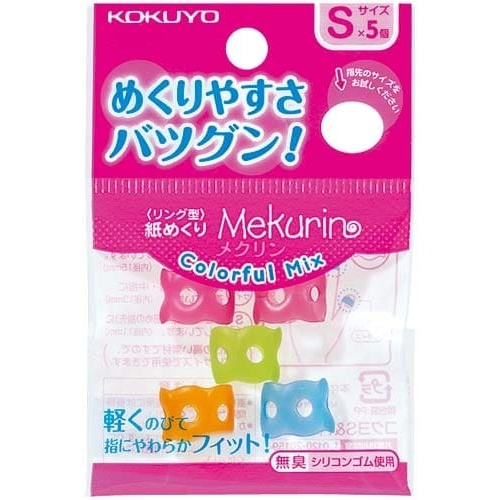 細い指の方にも対応した小さめのSサイズです。人気の4色をカラーミックス。柔らかく、伸縮性に優れたシリコンゴム素材なので、指にしっかりフィットし、紙のめくりやすさも抜群です。