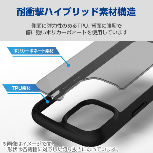 側面には弾力性のあるTPU(熱可塑性ポリウレタン)素材を、背面には強じんで傷に強いポリカーボネート素材を使用した、衝撃に強いハイブリッドケースです。