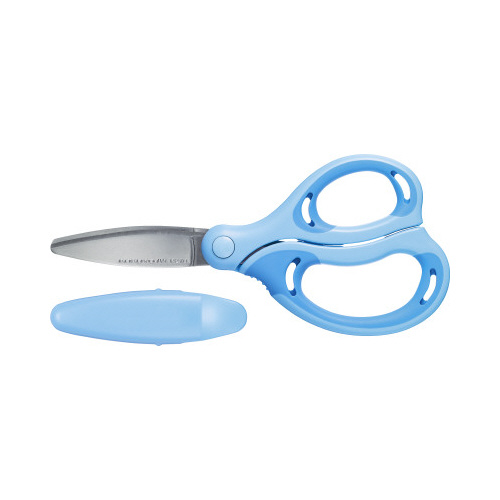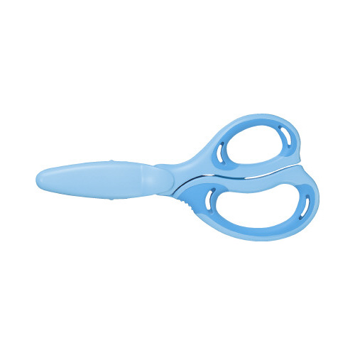 小さな力で刃先まで軽く切れる。テープやシールを切ってもべたつきにくい、子供のためのはさみ。