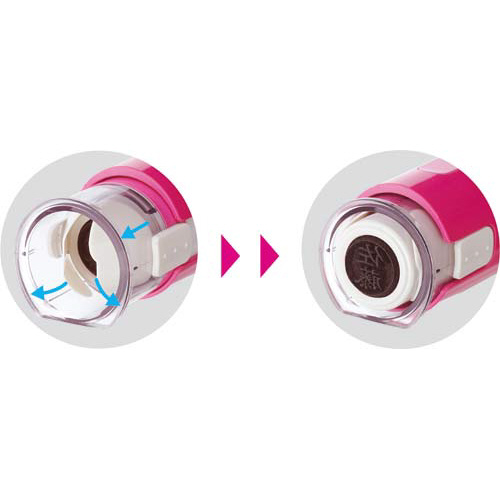 素早くなつ印、片手でかんたんロックができる。キャップがいらないシヤチハタ印!