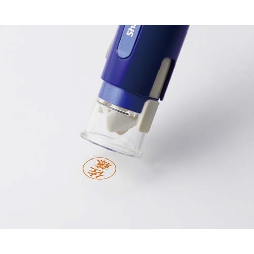 素早くなつ印、片手でかんたんロックができる。キャップがいらないシヤチハタ印!
