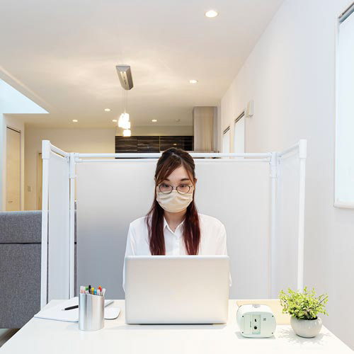お部屋を簡単に在宅スペースに!コの字・L型・W型など形状を自由自在動かせます。スクリーンは取り外し式で、ワークしない時は物干しとしてもご使用いただけます。