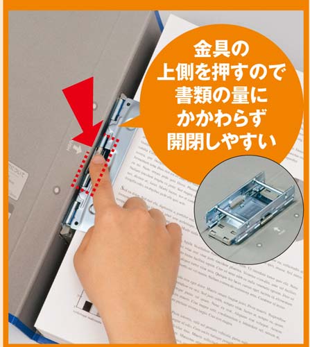 コクヨの人気商品!左右どちらからでも開けられる両開き式なので使いやすい。先端が背幅より細くなっているから、ファイルどおしの隙間に差込みやすいのもウレシイ!