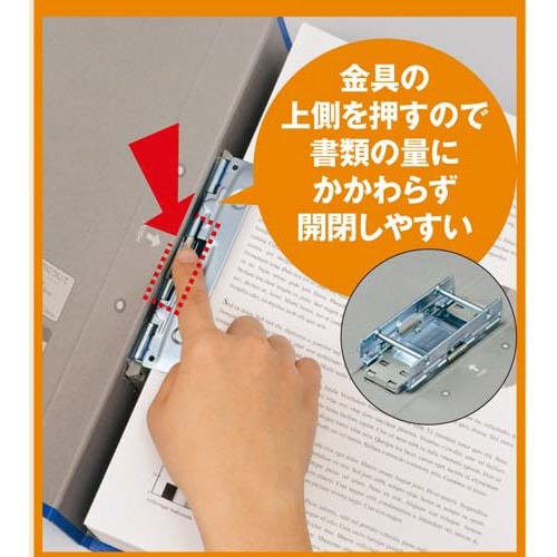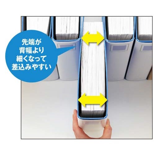 コクヨの人気商品!左右どちらからでも開けられる両開き式なので使いやすい。先端が背幅より細くなっているから、ファイルどおしの隙間に差込みやすいのもウレシイ!