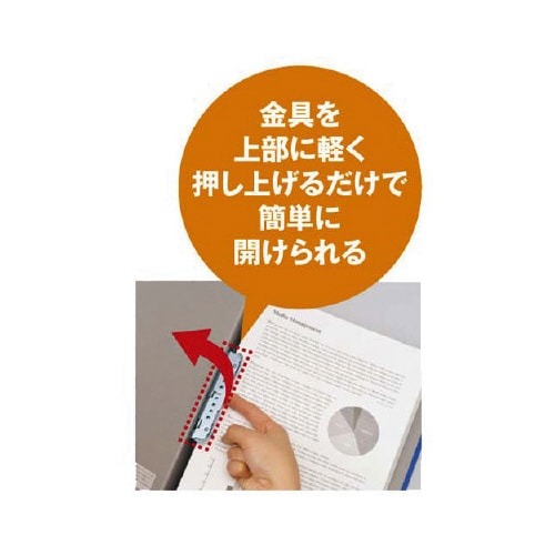 片開きチューブファイルと言えばコレ!金具を上部に軽く押し上げるだけで簡単に開けられます。