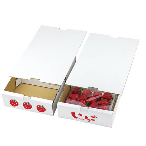 サイズが身404×280×67mmのフルーツ用ギフトパッケージ。フルーツの包装にちょうど良い大きさとなっています。イチゴのパッケージ、ギフト包装にいかがでしょうか。