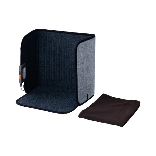 デスク下にちょうどよく収まって冬の足元を暖めるパネルヒーター。底面付きで足裏の冷えを軽減。使わない時は折りたたんでコンパクトに収納。温度調節可能。ひざ掛け付きでさらに暖か。