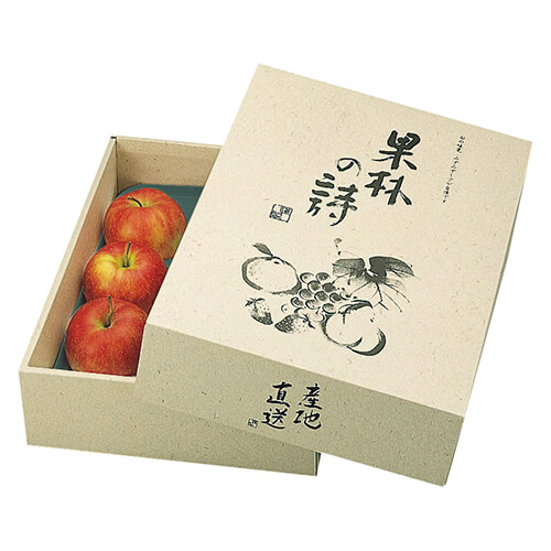 サイズが368×268×95mmのフルーツ用ギフトパッケージ。りんご・梨・桃等(約3kg)にちょうど良い大きさとなっています。さまざまな果物類のパッケージ、ギフト包装にいかがでしょうか。