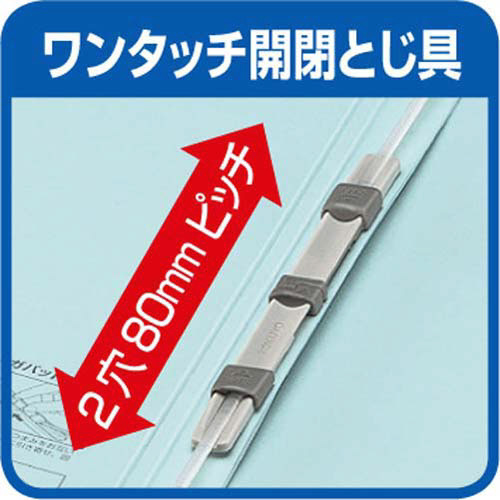 ワンタッチ開閉とじ具で使いやすい!書類量によって背幅が伸縮しますので、省スペースでの書類管理が出来ます。表紙をひもで固定できるひも穴付き。