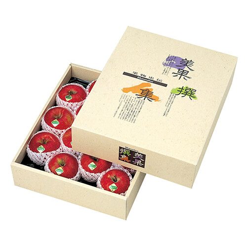 サイズが350×435×110mmのフルーツ用ギフトパッケージ。りんご5kgトレーにちょうど良い大きさとなっています。大型のグレープフルーツやりんご、2Lの桃にいかがでしょうか。