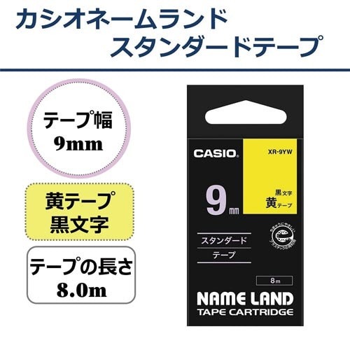 ネームランド 黄色テープ 9mm 黒文字